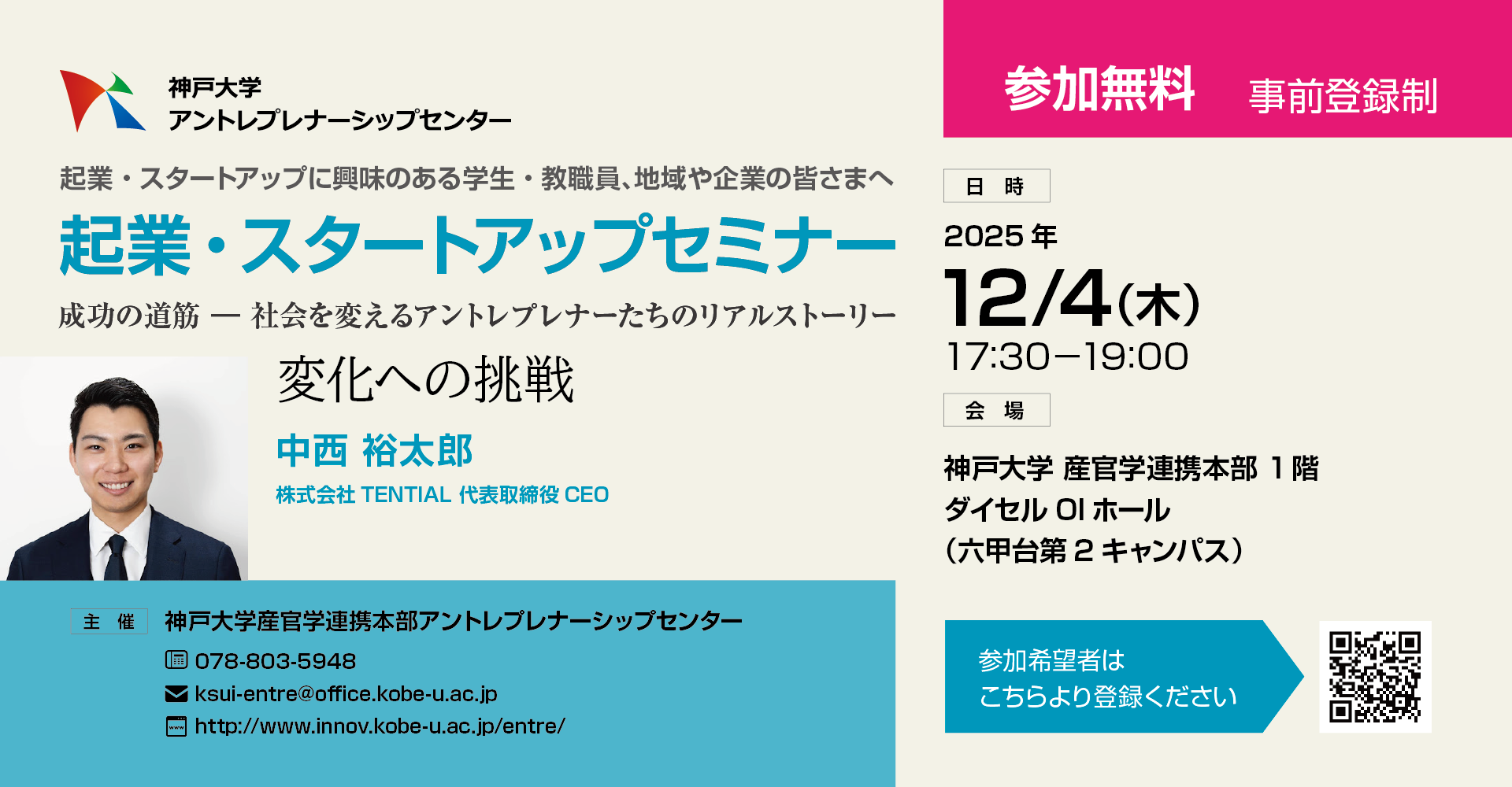 起業やスタートアップに興味のある学生・教職員、地域や企業の皆様、ぜひご参加ください。