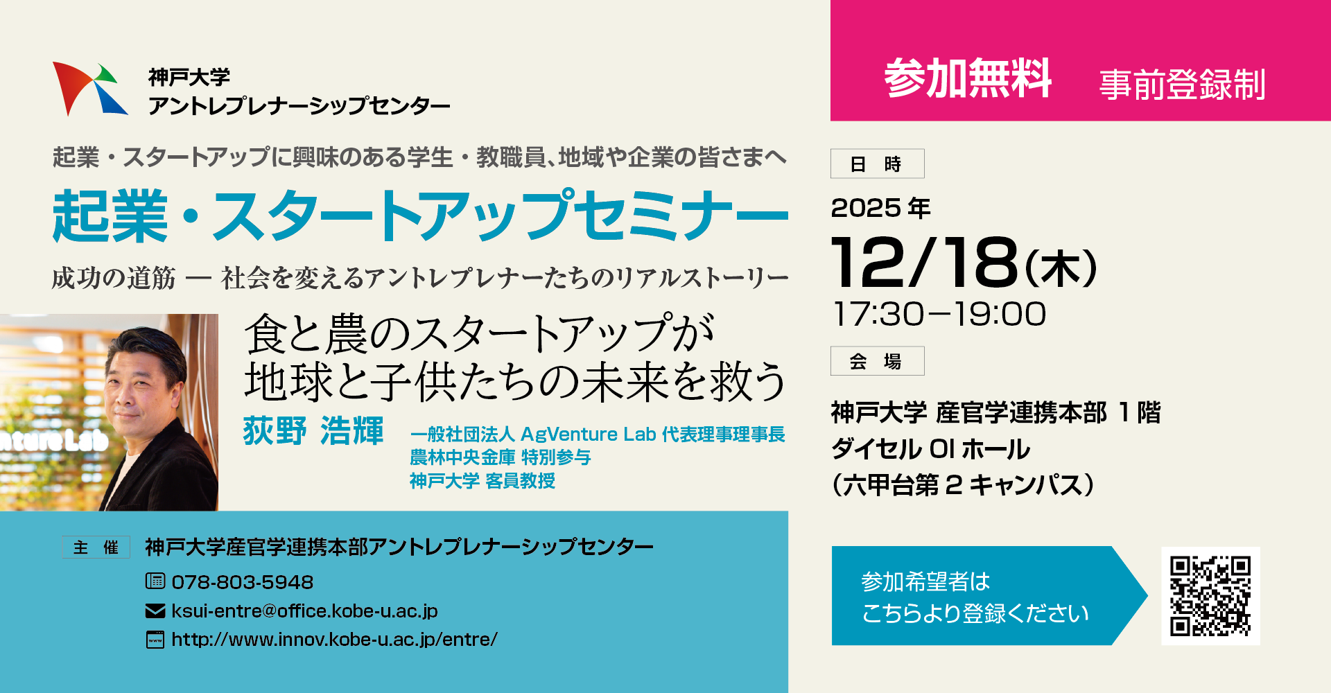 起業やスタートアップに興味のある学生・教職員、地域や企業の皆様、ぜひご参加ください。