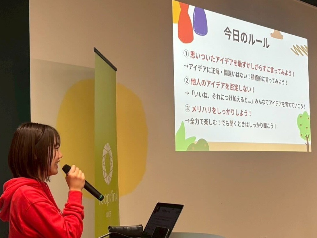 このボードゲームは、盤面上で遭遇する身近な社会のトラブルに対し、アイテムカードを組み合わせて解決策を導き出すというゲームメカニクスを採用しています。子どもたちは「発想→意思決定→振り返り」を繰り返すことでイノベーションの本質を体感しました。また、ゲーム内でお金を稼ぎ、会社を大きくし、資金を増やすという一連の流れを経験することで、事業運営のダイナミクスを直感的に学びとりました。会場は、子どもたちの真剣な眼差し、そしてアイデアがひらめいた瞬間の歓声と笑顔に包まれ、熱気に満ちた空間となりました。